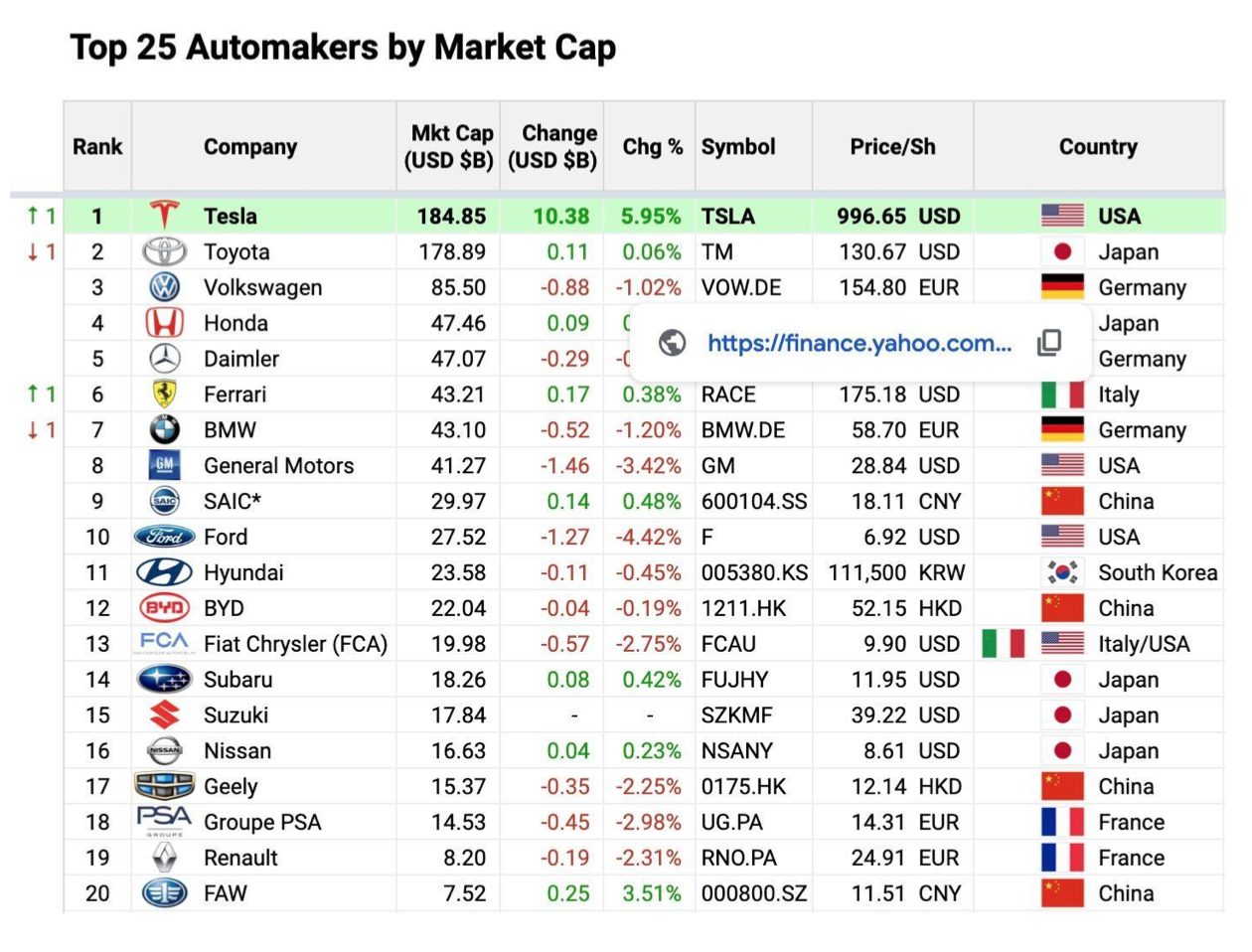 Tesla (at 16 years old) has a market value higher than all other automakers